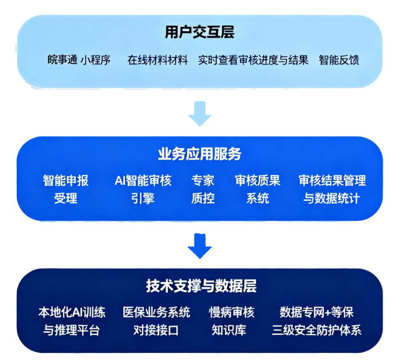 医保审核AI智能体在服务模式上,系统深度对接“皖事通”小程序,打造“申报—审核—反馈”全流程线上智能闭环。参保群众可随时随地在线提交申请,医保审核AI智能体即时完成智能判定,并自动生成个性化反馈意见,清晰说明未通过原因,真正实现“一次性告知、结果即时知”。服务透明度和精准度显著提升,群众重复提交率大幅下降,满意度持续提高。