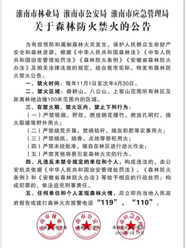 您现在的位置是:首页 » 生活万象 » 淮南生活 » 淮南生活 淮南市关于森林防火禁火的公告 2025-11-03 11:23:21 阅读次数:262 来源: 作者: 举报 扫描关注淮南帮微信公众号,第一时间获取淮南帮更新动态 本站内容采集于网络,均转载自政府官网、企事业单位公开发布的信息及网友提供的信息。均会注明来源,版权归原作者所有,如有侵权请立即与我们联系,我们将及时处理。本网站法律顾问:孔维钊 律师 本文地址: 技术支持:淮南智讯网络 上一篇:淮南市解除重污染天气预警公告 2025年第6期 下一篇:淮南市2025年10月份主要商品价格监测分析 相关文章 关于公共资源交易系统恢复服务的公告 淮南市2025年10月份主要商品价格监测分析 淮南市关于森林防火禁火的公告 淮南市解除重污染天气预警公告 2025年第6期 淮南举办第一届“福彩杯”门球大赛 淮南市:创新食品安全“你点我检” 构建社会共治新格局 2025年淮南市乡村振兴人才评选结果公示 关于公布淮南市历史文化名城名镇名村、传统村落、历史文化街区和历史建筑等历史文化保护监督举报方式的公告