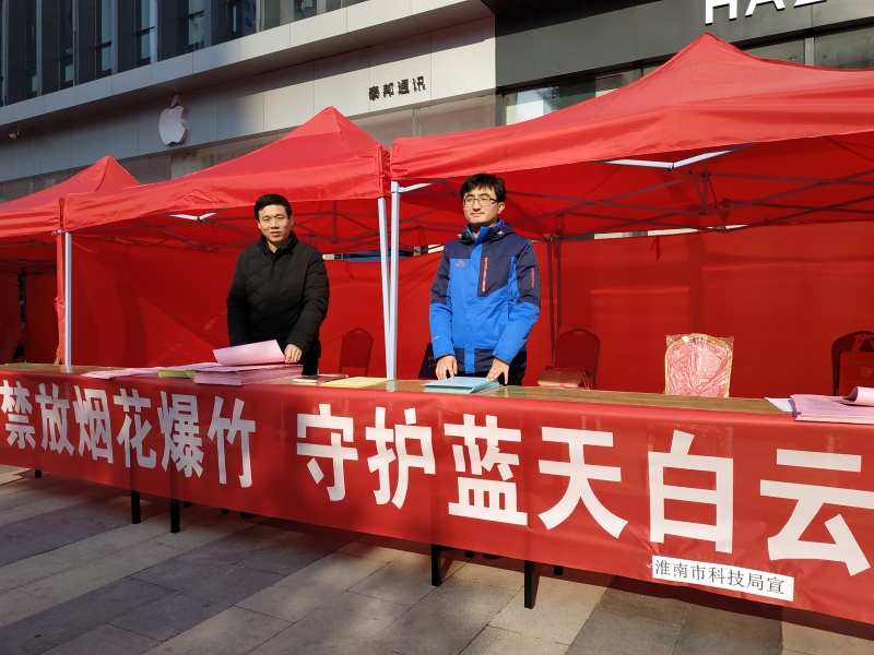 市科技局总农艺师张虎率领工作人员设置宣传展台,制作 “禁放”宣传展板,在现场向市民发放《淮南市人民政府关于淮南市禁止燃放烟花爆竹的通告》、《关于禁止燃放烟花爆竹的倡议书》、《致市民朋友的一封信》等宣传资料,让更多人意识到燃放烟花爆竹以及燃放烟花爆竹对空气质量带来的危害。